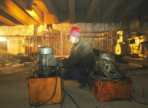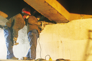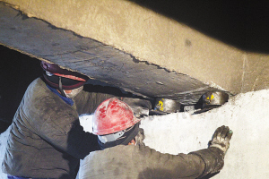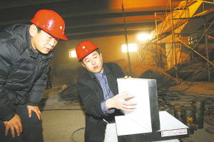經過漫長的等待,T梁一端被抬升到了規(guī)定高度,工人們抽取原有的橡膠支座,并換成新支座。據(jù)介紹,此次維修將更換160個橡膠支座。此外,還將針對T梁的橫隔板進行加寬式加固,并在原有一道橫隔板的基礎上,在其兩側各增設一道,以增強橋梁整體剛性,全橋將共增設16道橫隔板。(記者孫會芳)